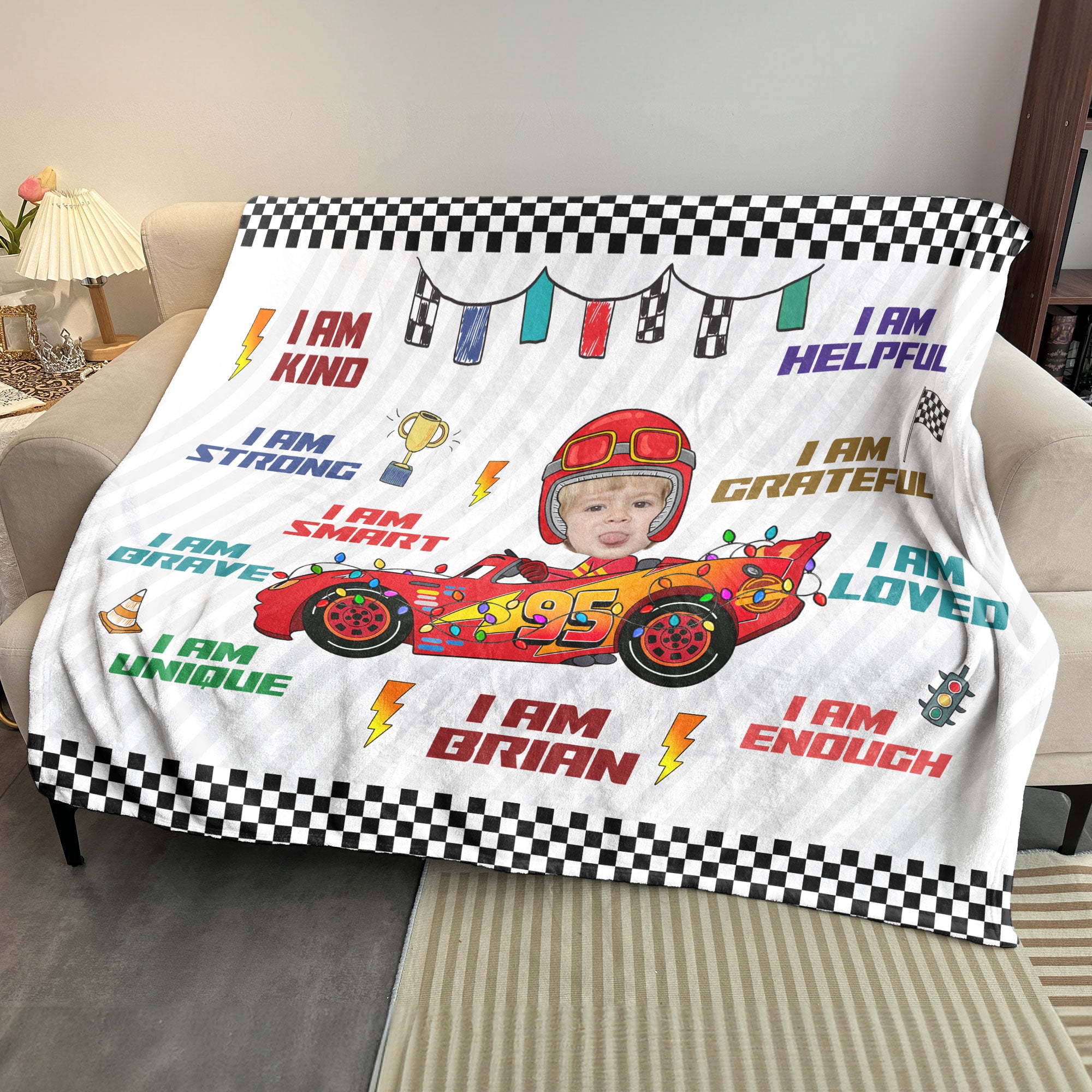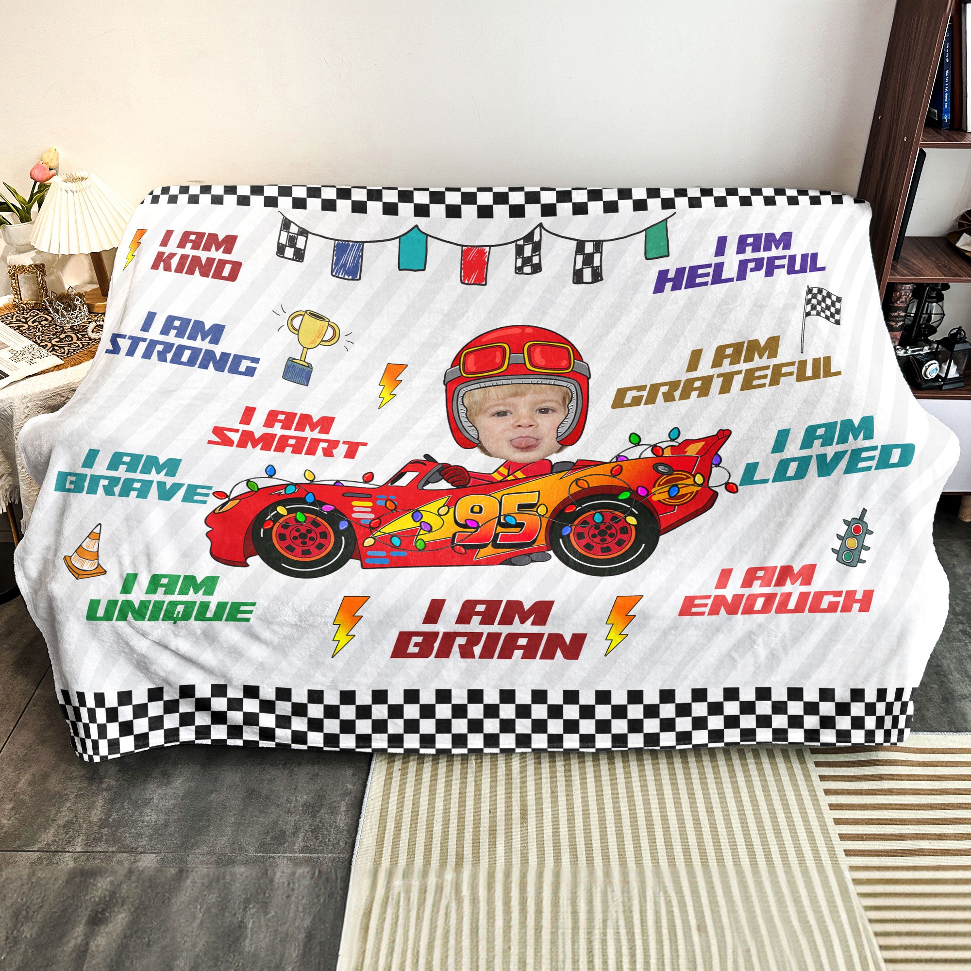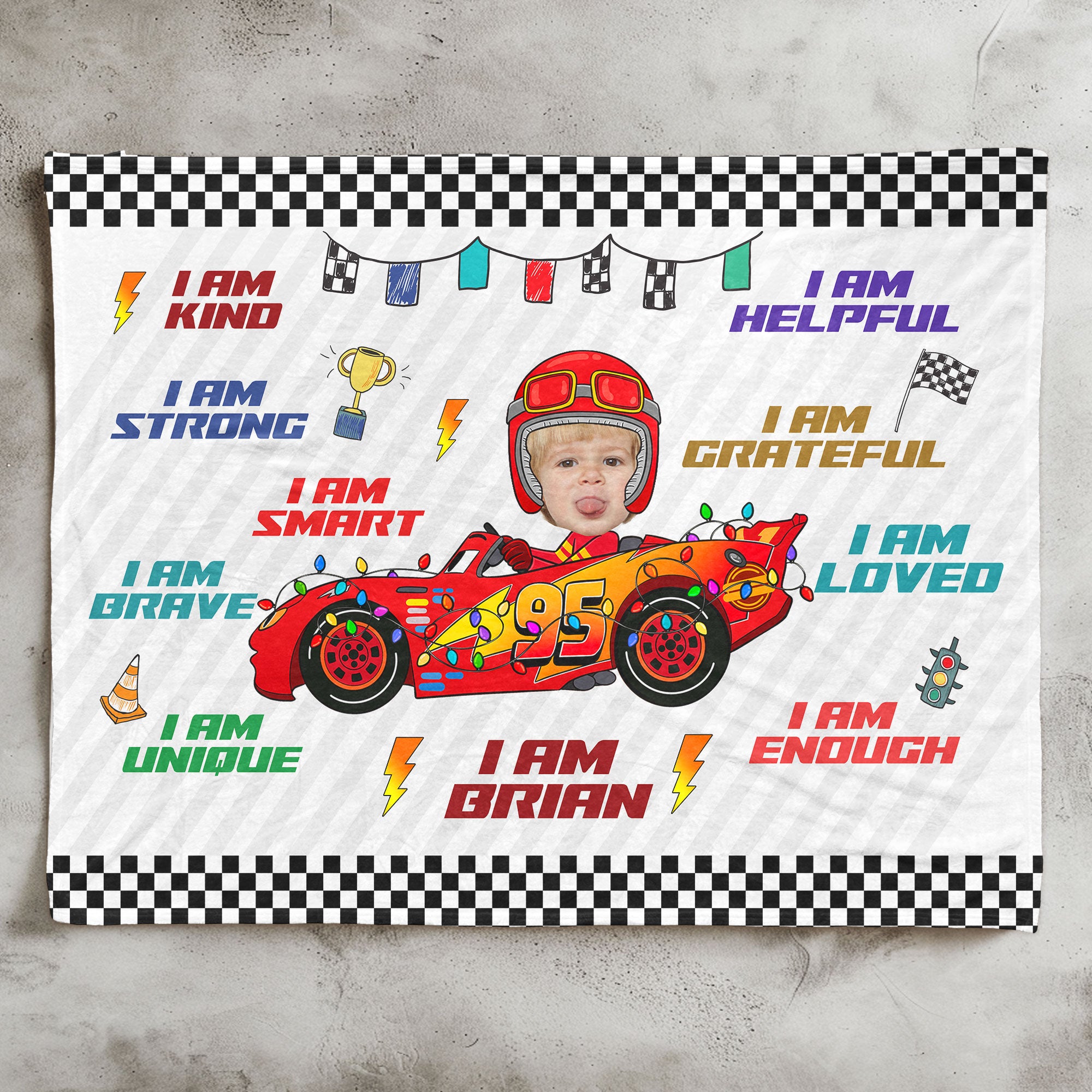 Custom Kid Face Car Toys Affirmation Gift – Personalized Photo Blanket Big Size